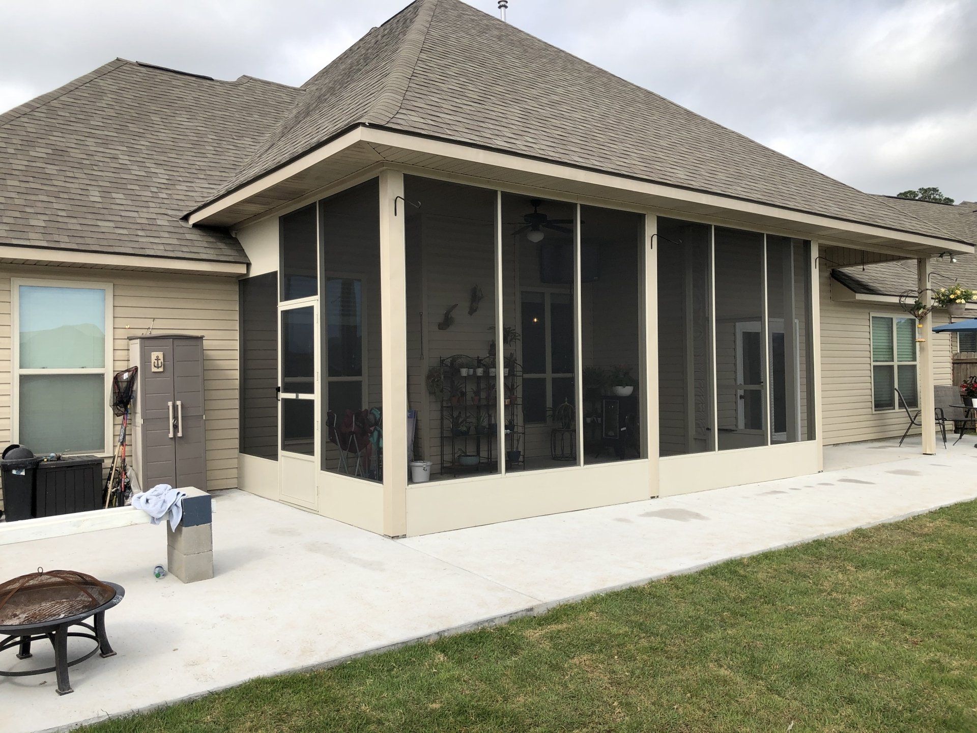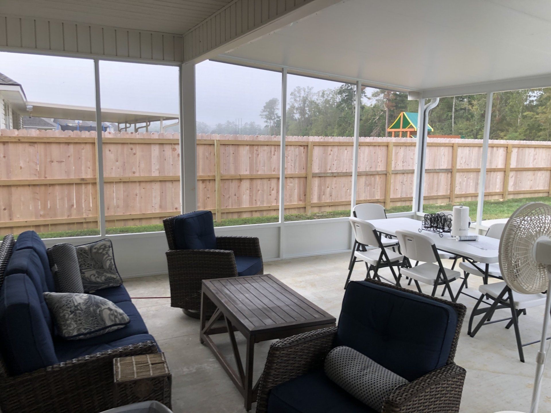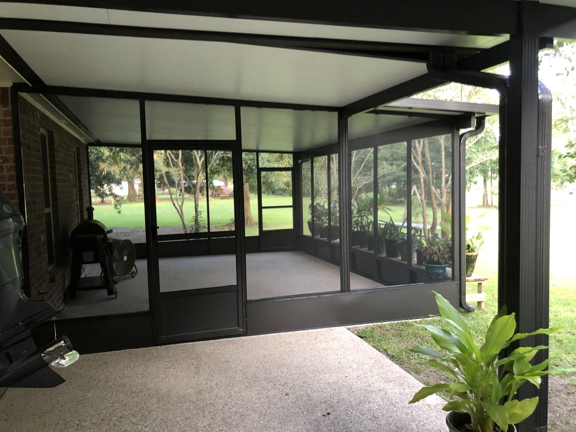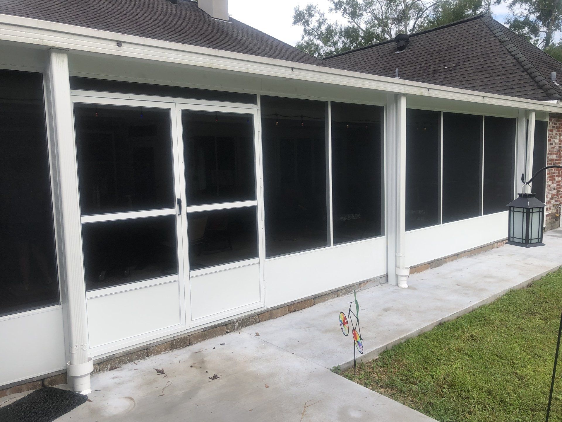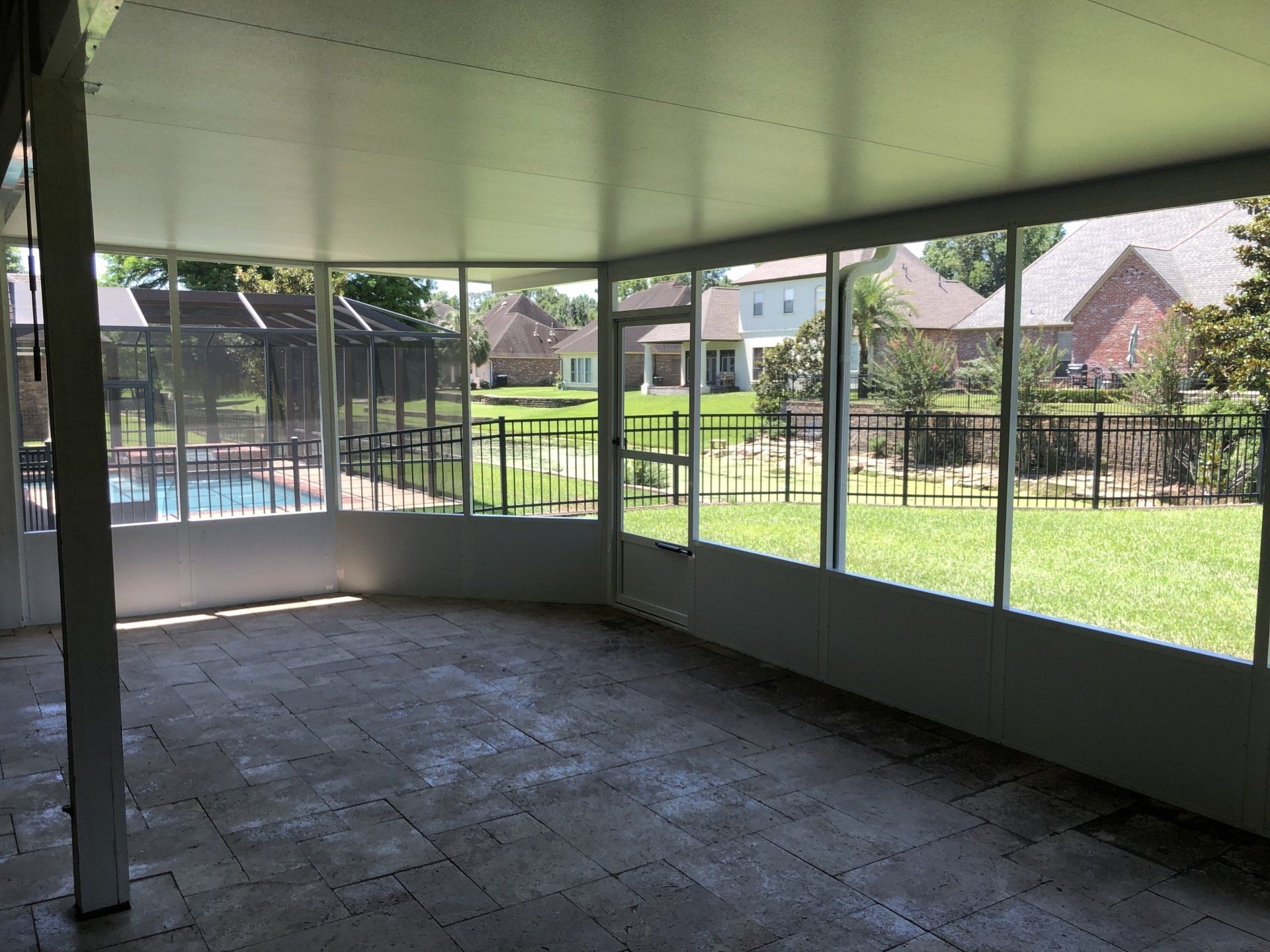Enjoy your screened patio with protection from the elements that Louisiana likes to throw at us. Wind, rain, and more of both. The screened enclosure offers additional relaxation space so you can enjoy your backyard anytime, in any weather. These can be offered with Insulated, or Flat Pan Roofs.